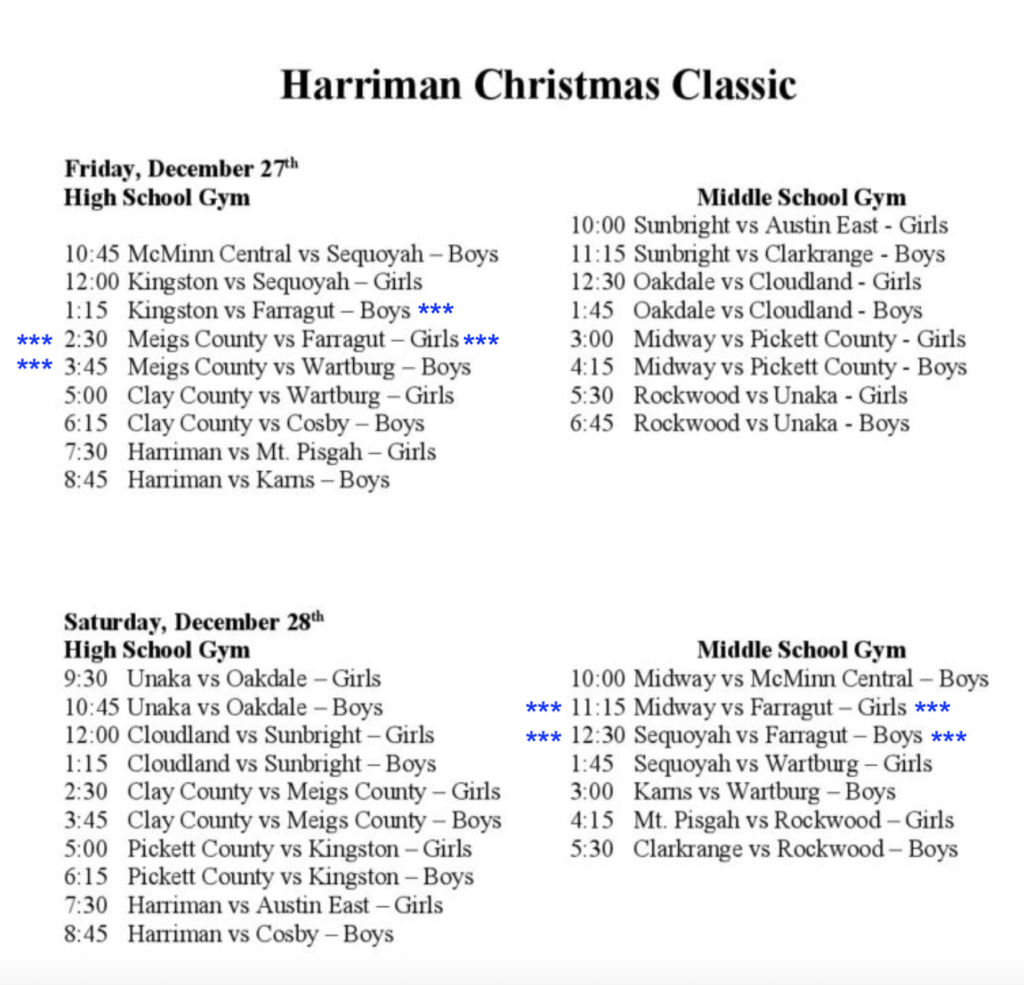 Farragut Girl vs Meigs Co 2:30 at the Harriman High School gym