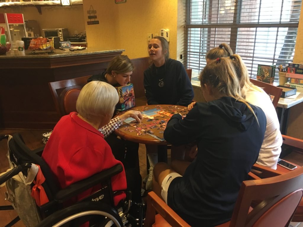 Coach Mayfield, Coach Munday, and the Lady Admirals basketball team visited NHC in Farragut on January 3rd. They went to visit with the residents and play games with them. It’s the third time they’ve gone in the last year.